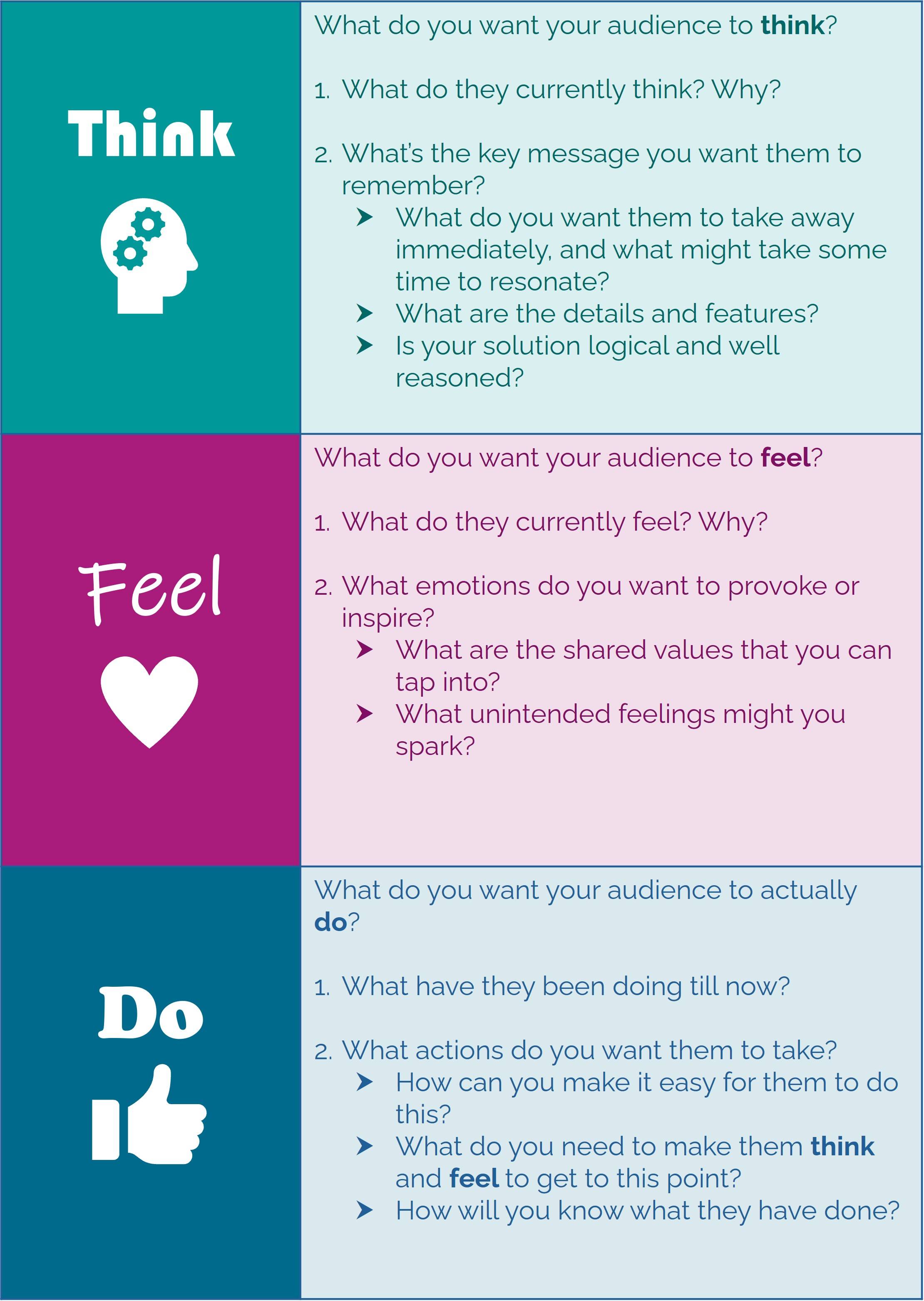 - You know what the Think, Feel, Do model is, how it works, and are convinced about how useful it could be.